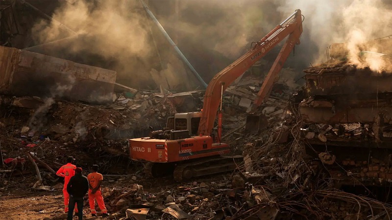 তিনি বলেন, ‘আমরা ঘটনাটি গভীরভাবে তদন্ত করছি। করাচি মিউনিসিপ্যাল করপোরেশনের (কেএমসি) জাফর খান জানান, প্রচণ্ড তাপ থাকা সত্ত্বেও ফায়ার সার্ভিসের দল এখনো সেখানে কাজ করেছে। তিনি বলেন, ভবনের একটি অংশ পরিষ্কার করা হয়েছে এবং বাকি দুটি অংশ পরিষ্কারের কাজ চলছে। তিনি প্রতিশ্রুতি দেন, ধ্বংসস্তূপের নিচে চাপা পড়া মরদেহ উদ্ধারের চেষ্টা করা হবে। যেখানে ভবনের কাঠামো এখনো স্থিতিশীল, সেখানে দমকলকর্মীদের পাঠানো হচ্ছে।