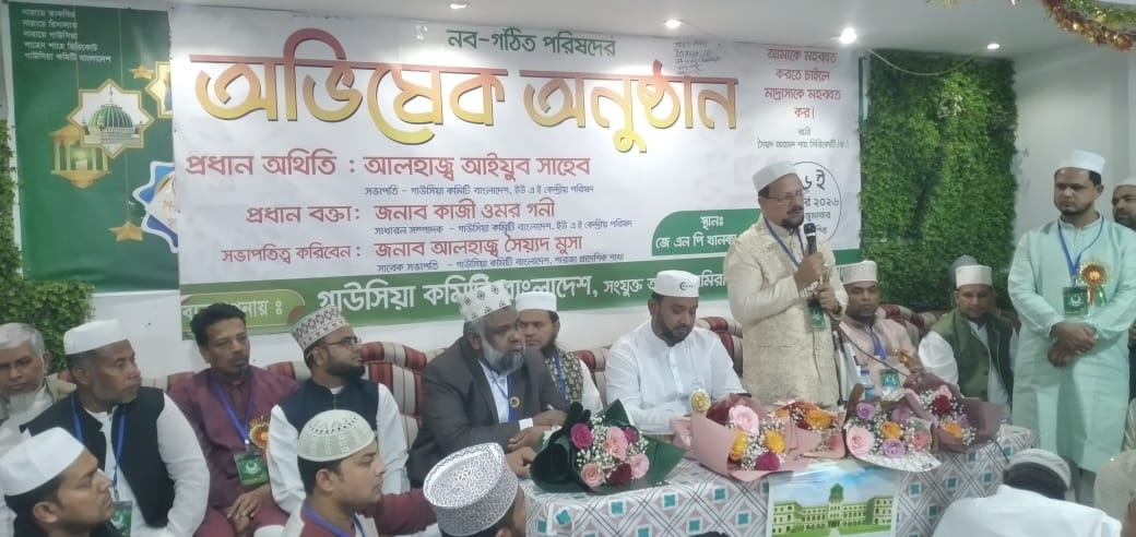 মোহাম্মদ আরমান চৌধুরী, ইউ এ ই প্রতিনিধি: গাউসিয়া কমিটি সারজাহ শাখার নবগঠিত পরিষদের অভিষেক অনুষ্ঠান ও আলোচনা সভা শুক্রবার (১৬ জানুয়ারি) রাতে সংযুক্ত আরব আমিরাতের শারজাহ জেএনপি খানকা শরীফে অনুষ্ঠিত হয়েছে। অনুষ্ঠানের প্রথম অধিবেশন পরিচালনা করেন আলহাজ মোহাম্মদ ইয়াসিন। এতে সভাপতিত্ব করেন আলহাজ মোহাম্মদ সৈয়দ মুসা। প্রধান অতিথি হিসেবে উপস্থিত ছিলেন আলহাজ মাওলানা মোহাম্মদ আবদুল কাদের এবং প্রধান বক্তা ছিলেন আলহাজ মাওলানা মোহাম্মদ দিদারুল আলম।