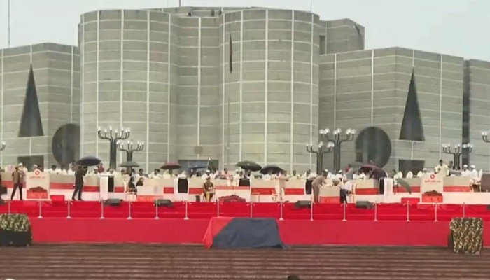মঞ্চে রাজনৈতিক দলগুলোর নেতাদের মধ্যে বিএনপির মহাসচিব মির্জা ফখরুল ইসলাম আলমগীর, স্থায়ী কমিটির সদস্য সালাহউদ্দিন আহমদ, জামায়াতে ইসলামীর নায়েবে আমির সৈয়দ আবদুল্লাহ মোহাম্মদ তাহের, নাগরিক ঐক্যের সভাপতি মাহমুদুর রহমান মান্না, গণসংহতি আন্দোলনের প্রধান সমন্বয়কারী জোনায়েদ সাকি, ইসলামী আন্দোলন বাংলাদেশের প্রেসিডিয়াম সদস্য আশরাফ আলী আকন প্রমুখকে দেখা গেছে। এ ছাড়া অনুষ্ঠানে যোগ দিয়েছেন বাংলাদেশে নিযুক্ত বিভিন্ন দেশের কূটনীতিকেরা।