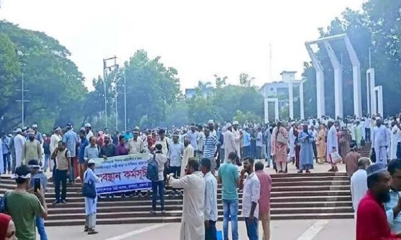 গত রোববার জাতীয় প্রেসক্লাবের সামনে মূল বেতনের ২০ শতাংশ (ন্যূনতম ৩ হাজার টাকা) বাড়িভাড়া, শিক্ষক ও কর্মচারী উভয়ের জন্য দেড় হাজার টাকা চিকিৎসা ভাতা এবং কর্মচারীদের উৎসব ভাতা ৭৫ শতাংশ করার দাবিতে লাগাতার কর্মসূচি শুরু করেন বেসরকারি শিক্ষাপ্রতিষ্ঠানের এমপিওভুক্ত শিক্ষকুকর্মচারীরা। এতে সারা দেশ থেকে বিপুলসংখ্যক শিক্ষকুকর্মচারী অংশ নেন।