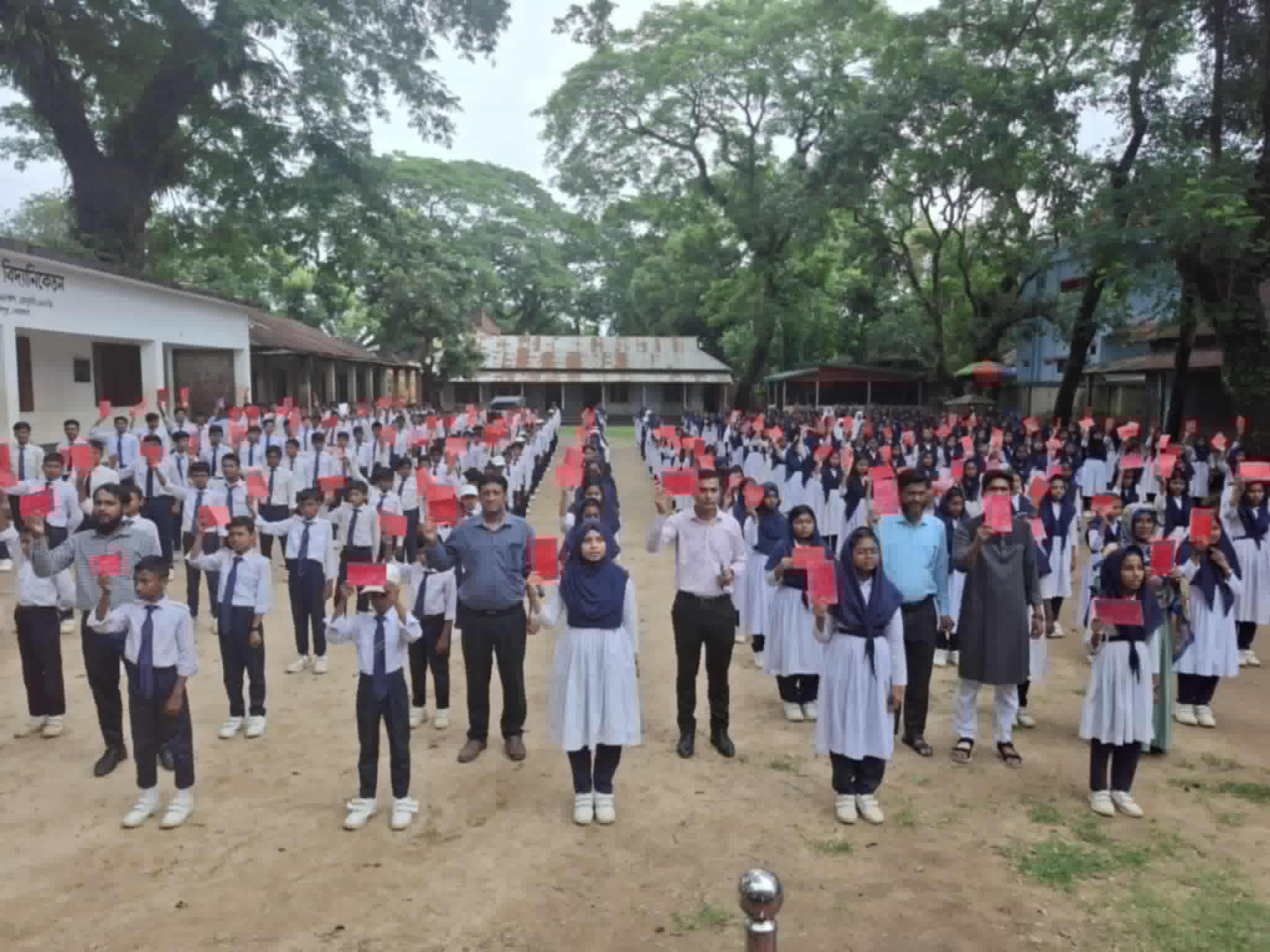 এই স্লোগানে নেত্রকোনার দুর্গাপুরে বাল্য বিবাহ ও মাদকের বিরুদ্ধে লাল কার্ড প্রদর্শন করেছে শিক্ষার্থীরা। এ সময় এসব প্রতিরোধে শপথও নিয়েছে। বুধবার (২১ মে) দুপুরে স্থানীয় স্বেচ্ছাসেবী সংগঠন এসবি রক্তদান সমাজকল্যাণ ফাউন্ডেশনের আয়োজনে সুসঙ্গ আদর্শ বিদ্যানিকেতন স্কুলে এই কর্মসূচি অনুষ্ঠিত হয়। নবম শ্রেণির শিক্ষার্থী মারুফা তাসমিম জানায়, আমরা আজ জেনেছি আমাদের আশপাশে বাল্য বিবাহ হলে করনীয় সম্পর্কে। আমরা সবাইকে সচেতন করতে পারি এবং বাল্য বিবাহের বিরুদ্ধে প্রতিবাদ জানাতে পারি। তাছাড়াও মাদক সমাজের ক্ষতি করে যে মাদক দ্রব্য সেবন শুধু তার একার ক্ষতি করেনা তার পরিবারেরও ক্ষতি করে তাই আমরা মাদক ও বাল্য বিবাহকে লাল কার্ড দেখিয়েছি। অনুষ্ঠানে প্রধান অতিথি হিসেবে উপজেলা নির্বাহী অফিসার (ইউএনও) মো. নাভিদ রেজওয়ানুল কবীর বাল্য বিয়ে ও মাদকের কুফল বিষয়ে আলোচনা করেন। উল্লেখ করেন, গত ছয় মাসে চারটি বাল্য বিবাহ করেছেন। তিনি বলেন, বাল্যবিবাহ ও মাদক একটি জাতিকে রুগ্ন ও মেধাশূণ্য করে দেয়। সচেতনতাই পারে এটি রোধ করতে। বিশেষ করে বাল্য একটি মেয়ে শারীরিক ঝুঁকিতেই পড়ে না, তা পরবর্তি প্রজন্মকেও ঝুঁকিতে ফেলে। তেমনি মাদক সেবনে শুধু একজন ব্যক্তিকেই নষ্ট করে না ,তার পরিবারকেও ধ্বংস করে দেয়। বাল্য বিবাহ ও মাদক সেবনের খবর যেকোনো মূহুর্তে প্রশাসনকে দেওয়া হলে আইনগত ব্যবস্থা নেওয়া হবে বলেও জানান তিনি। এ-সময় সংগঠনের সভাপতি সৈকত সরকারের সভাপতিত্বে বিশেষ অতিথি হিসেবে ছিলেন উপজেলা স্বাস্থ্য কমপ্লেক্সের আবাসিক মেডিকেল অফিসার ডা. তানজিরুল ইসলাম রায়হান, সমাজ সেবা অফিসার মাসুল তালুকদারসহ বিদ্যালয়ের শিক্ষক-শিক্ষিকা,সাংবাদিক ও সুশীল সমাজের নেতৃবৃন্দ উপস্থিত ছিলেন।