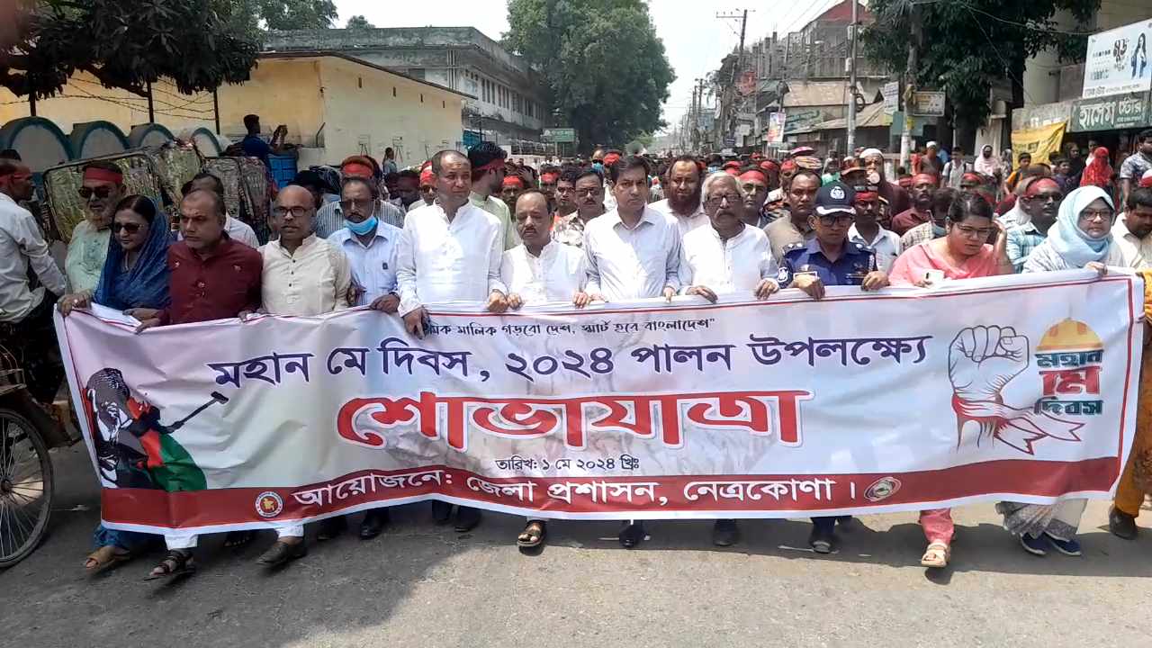 আলোচনা সভা র্যালী সহ নানা আয়োজনের মধ্যদিয়ে নেত্রকোনায় মহান জাতীয় মে দিবস ২০২৪ পালিত হয়েছে। দিবসটি উপলক্ষে বুধবার সকাল সাড়ে ১০ টায় নেত্রকোনা জেলা প্রশাসনের আয়োজনে পৌর শহেরর মোক্তারপাড়া মাঠ থেকে একটি বর্ণাঢ্য র্যালী বের হয়ে শহরের প্রধান সড়ক প্রদক্ষিন করে। এ সময় র্যালিতে জেলা শহরের বিভিন্ন শ্রমিক সংগঠন ও শ্রমিকেরা অংশ গ্রহন করেন। সম্মেলিত এ র্যালীতে নেতৃত্বদেন জেলা প্রশাসক শাহেদ পারভেজ। পরে পাবলিক হলে আলোচনা সভা অনুষ্ঠিত হয়। এতে জেলা প্রশাসক এর সভাপতিত্বে বক্তব্য রাখেন, অতিরিক্ত পুলিশ সুপার হারুন অর রশিদ, জেলা পরিষদ চেয়ারম্যান বীর মুক্তিযোদ্ধা অসিত সরকার, পৌর মেয়র নজরুল ইসলাম খান, জেলা আওয়ামীলীগের সাধারন সম্পাদ শামছুর রহমান লিটন, জেলা মোটরযান ইউনিয়নের সেক্রেটারি সাইফুল ইসলাম, জেলা অটো টেম্পু শ্রমিক ইউনিয়নের নেতা বিল্লাল শেখ বিল্লাল,বিড়ি শ্রমিক ইউনিয়নের নেতা আব্দুল গফুর, দোকান কর্মচারী ইউনিয়নের নেতা আব্দুল হালিম, নির্মাণ শ্রমিক ইউনিয়নের সভাপতি আলী উসমানসহ অনেকেই। জেলা প্রশাসন ছাড়াও বিভিন্ন শ্রমিক সংগঠনের উদ্যোগে পৃথক পৃথক স্থানে বিভিন্ন কর্মসূচি পালিত হয়।