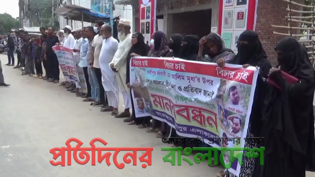ফরিদপুরে হত্যা চেষ্টা মামলার আসামীদের গ্রেপ্তারের দাবিতে মানববন্ধন