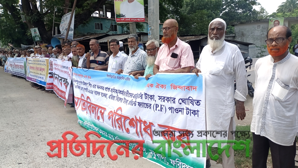 ফরিদপুর চিনিকলের অবসরপ্রাপ্ত শ্রমিক কর্মচারীদের মানববন্ধন