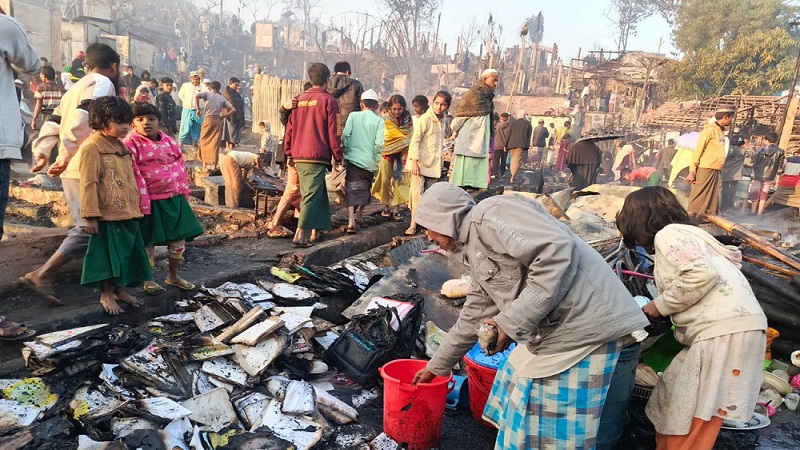 কক্সবাজারের উখিয়ায় অবস্থিত রোহিঙ্গা আশ্রয়শিবিরে ফের ভয়াবহ অগ্নিকাণ্ডের ঘটনা ঘটেছে। এতে প্রায় পাঁচ শতাধিক বসতঘর ও বিভিন্ন স্থাপনা সম্পূর্ণভাবে আগুনে পুড়ে গেছে বলে জানা গেছে। মুহূর্তের মধ্যে আগুন ছড়িয়ে পড়ায় ক্যাম্পজুড়ে আতঙ্ক ও বিশৃঙ্খল পরিস্থিতির সৃষ্টি হয়।মঙ্গলবার (২০ জানুয়ারি) রাত আনুমানিক তিনটার দিকে উখিয়া উপজেলার পালংখালী ইউনিয়নের শফিউল্লাহ কাটা এলাকার ১৬ নম্বর রোহিঙ্গা ক্যাম্পে আগুনের সূত্রপাত হয়। আগুন দ্রুত ছড়িয়ে পড়ায় অনেক পরিবার ঘর থেকে কোনো জিনিসপত্র উদ্ধার করার সুযোগ পায়নি। স্থানীয় সূত্র ও প্রত্যক্ষদর্শীরা জানান, ক্যাম্পের ডি-৪ ব্লকে অবস্থিত একটি এনজিও পরিচালিত লার্নিং সেন্টার থেকে প্রথমে আগুন লাগে। ক্যাম্পের ঘরগুলো অত্যন্ত ঘনবসতিপূর্ণ এবং বাঁশ, ত্রিপলসহ দাহ্য উপকরণে তৈরি হওয়ায় আগুন অল্প সময়েই আশপাশের ঘর ও শেডে ছড়িয়ে পড়ে।