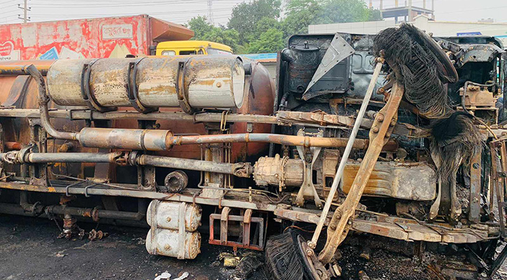 সাভারে তেলের লরি উল্টে আগুন, একজনের মৃত্যু
