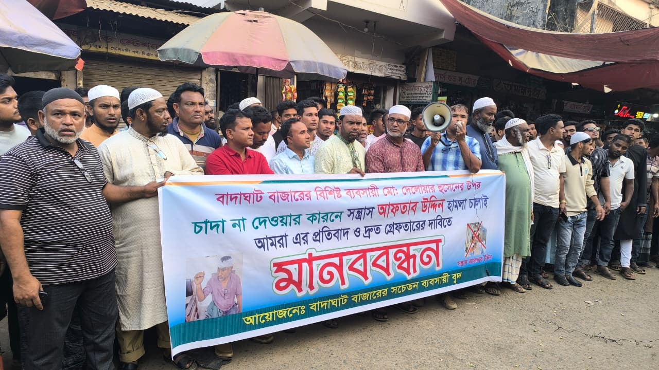 সুনামগঞ্জে২০ লাখ টাকা চাঁদা চাওয়ায়”এলাকাবাসীর মানববন্ধন